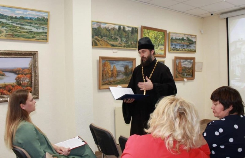 В краеведческом музее Октябрьского района в рамках ХХVIII областных Димитриевских образовательных чтений «Православие и отечественная культура: потери и приобретения минувшего, образ будущего» состоялась секция учителей основ православной культуры. В мероприятии принял участие председатель Отдела религиозного образования и катехизации, благочинный приходов Алексадровск –Грушевского и Нижнедонского округов протоиерей Сергий Яценко.