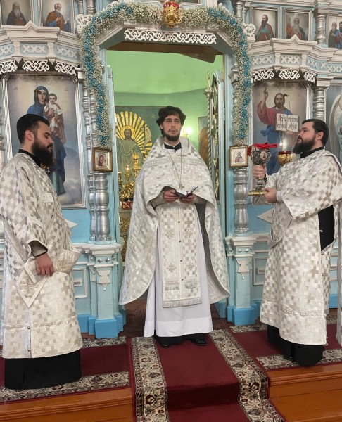 Соборную молитву совершили настоятель храма, благочинный приходов Нижнедонского округа протоиерей Сергий Яценко, настоятель храма святителя Тихона Задонского станицы Кривянская протоиерей Константин Федосеев, настоятель храма в честь иконы Божией Матери Одигитрия пос. Таловый иерей Андрей Ковалев, клирики Покровского Кафедрального собора г. Шахты иерей Михаил Дубянский, диакон Трофим Осяк и диакон Вячеслав Иващенко.