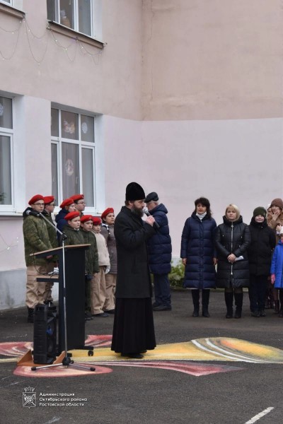 В торжественной церемонии посвящённой данному событию, приняли участие глава Администрации Октябрьского района Людмила Овчиева, глава Администрации Коммунарского поселения Ольга Безрукавая, благочинный приходов Нижнедонского округов протоиерей Сергий Яценко, председатель Совета ветеранов войны, труда (пенсионеров), вооруженных сил и правоохранительных органов Юрий Точеный, директор школы, учителя, ученики, участники СВО, председатель первичной организации ветеранов-участников специальной военной операции Вячеслав Черный.