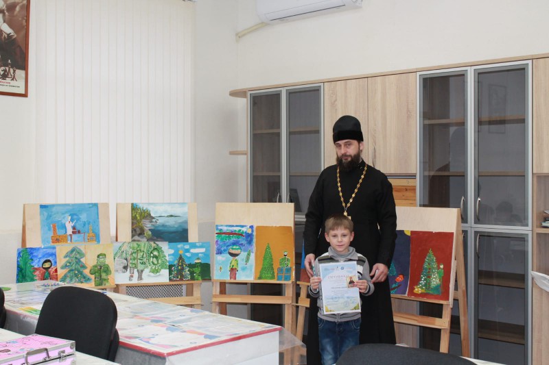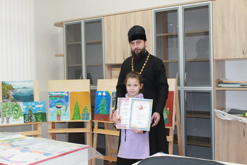 Протоиерей Сергий обратился к юным художникам со словами поздравления и вручил ребятам благодарственные грамоты, дипломы победителей и сертификаты участников.