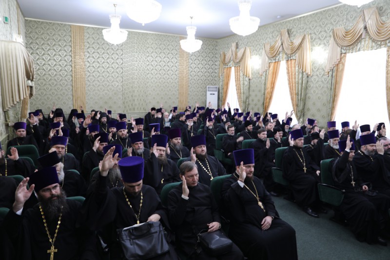 В районном Дворце культуры п. Каменоломни под председательством епископа Шахтинского и Миллеровского Симона состоялось годовое собрание духовенства епархии.