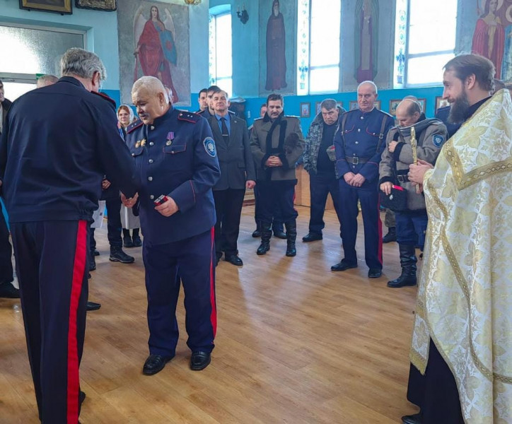 Духовник Нижнедонского Юрта протоиерей Сергий Яценко поздравил награжденных с заслуженной наградой и обратился к казакам с пастырским словом.