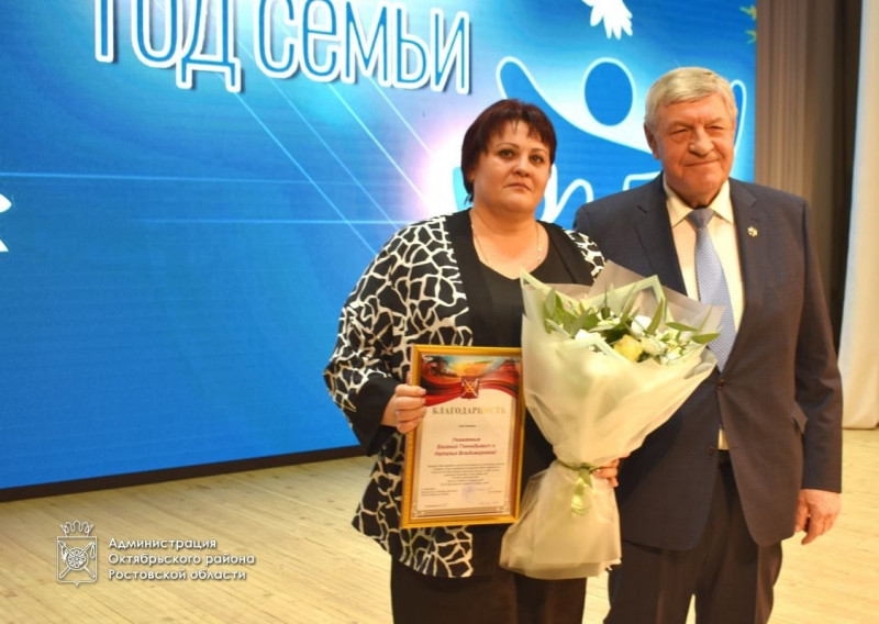 Было принято решение на торжественном мероприятии наградить семьи Октябрьского района: Благодарностями Собрания депутатов Октябрьского района и главы Администрации Октябрьского района, семьи, являющиеся примером для своих детей, внуков и жителей Октябрьского района, за многолетний добросовестный труд на благо Октябрьского района, активную жизненную позицию, долгие годы в браке, за оказание волонтерской помощи муниципальному штабу Всероссийской акции #МыВместе, муниципальному центру добровольчества «Пульс района», а также за активное участие в сборе и отправке гуманитарной помощи участникам СВО, а также в связи с открытием Года семьи.
