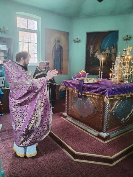 Божественную Литургию Преждеосвящённых Даров в день памяти преподобного Серафима Вырицкого, совершили благочинный приходов Нижнедонского округа протоиерей Сергий Яценко, настоятель храма святого благоверного великого князя Димитрия Донского п. Нижнедонской игумен Александр (Корнеев), настоятель храма святителя Алексия Московского ст.Бессергеневской протоиерей Андрей Поздняков , настоятель храма святой мученицы Татианы п.Персиановский иеромонах Николай (Наметышев), настоятель Одигитриевского храма ст. Заплавской протоиерей Андрей Супрунов, настоятель храма Святой Троицы х. Ягодинка протоиерей Николай Филимонов, настоятель Покровского храма ст.Кривянской иерей Александр Шапкин и клирик храма Архистратига Михаила п. Каменоломни иерей Максим Коваленко.
