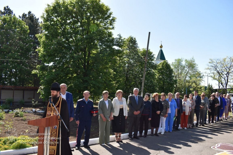 Благочинный приходов Нижнедонского округа протоиерей Сергий Яценко совершил освящение мемориальной доски и обратился к участникам с пастырским словом.