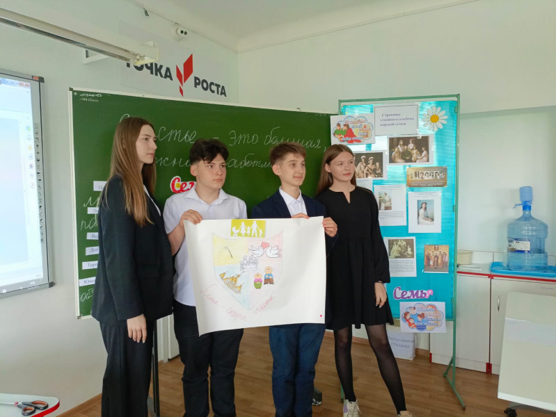 Учитель Козина Надежда, рассказала о роли семьи в современном обществе. Особое внимание обратила на то, что семья является источником любви, понимания и поддержки, именно возле семейного очага каждый учится быть добрым, честным и справедливым. На семьях держится общество, государство, мир. Ради семьи хочется жить, добиваться высоких результатов. На уроке старшеклассники сами составляли «рецепт семейного счастья».