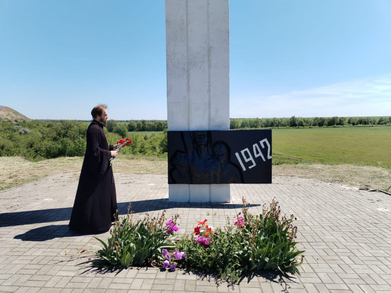 После совершения заупокойного Богослужения, на котором были вознесены молитвы о "приснопамятных вождях и воинах за веру и Отечество на поле брани жизнь свою положивших, от ран и глада скончавшихся, в пленении и горьких работах невинно умученных и убиенных, и всех, Победы ради потрудившимся", благочинный приходов Нижнедонского протоиерей Сергий Яценко и клирик храма Архистратига Михаила п. Каменоломни иерей Максим Коваленко почтили память погибших в годы Великой Отечественной войны, возложили цветы к месту убитым и расстрелянным жителям п. Каменоломни и г. Шахты в период оккупации 1942 г. и братской могиле солдат в п. Каменоломни, умерших от ран в санитарных поездах.