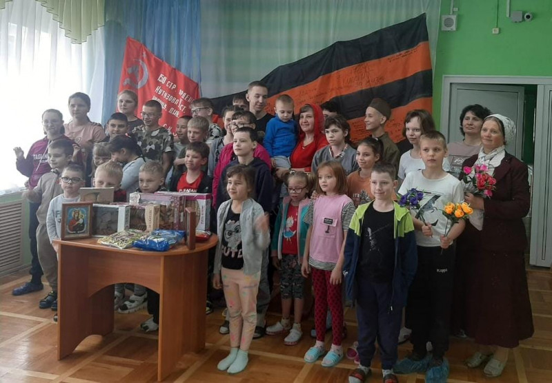 По приглашению руководства реабилитационного центра "Добродея" для детей и подростков с ограниченными возможностями здоровья г. Шахты, учащиеся церковно - приходской воскресной школы "Благовест" храма Архистратига Михаила п. Каменоломни посетили воспитанников учреждения и поздравили с Пасхой Господней, и Днем Победы.