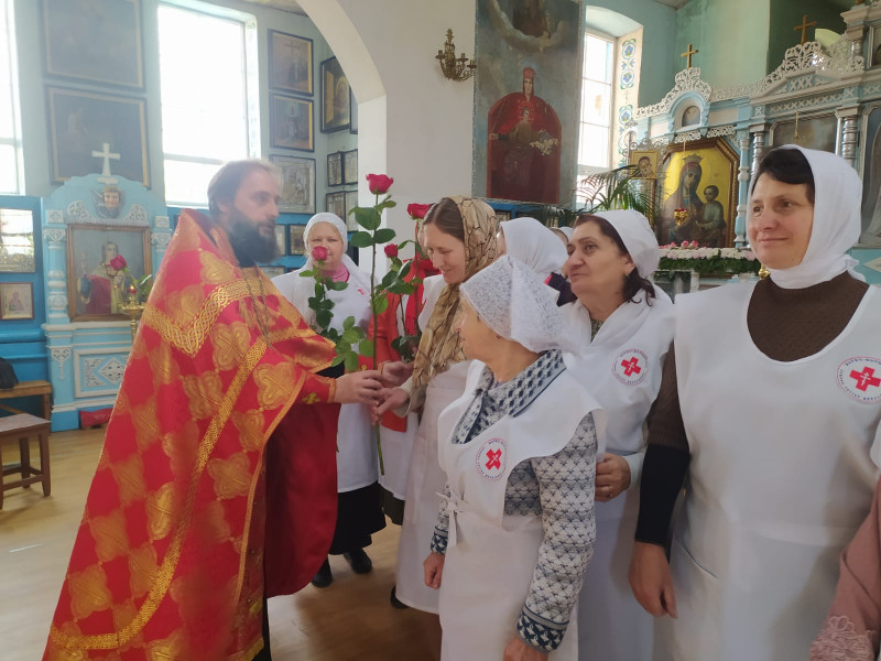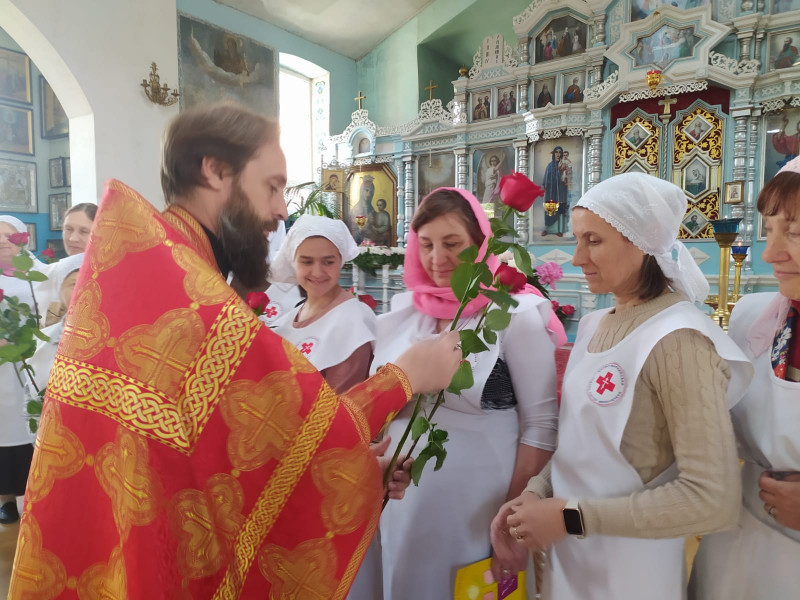 По окончании Божественной Литургии протоиерей Сергий обратился ко всем присутствующим с пастырским словом, в котором рассказал о подвиге святых жен-мироносиц и напомнил о благодати милосердного служения ближним.