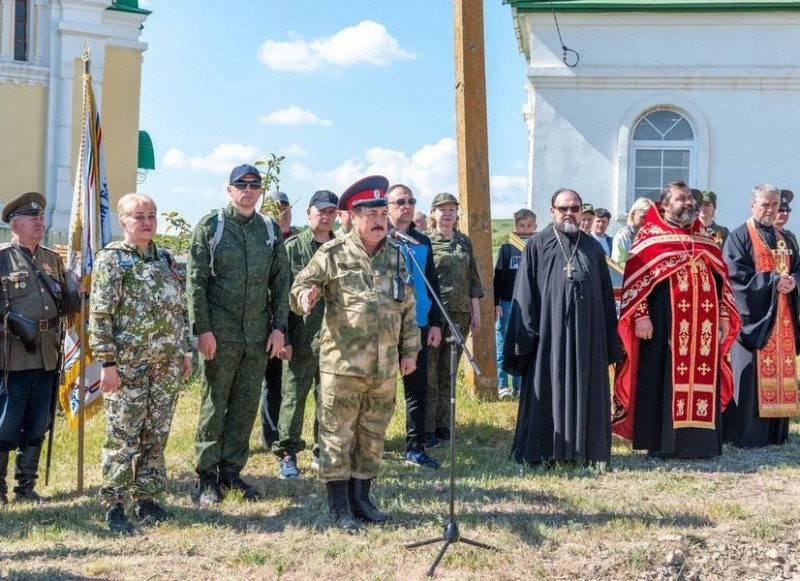 Военно-полевой выход традиционно начинается у стен Свято-Троицкого храма хутора Дядин. Молебен на начало благого дела был совершен благочинным Белокалитвенского округа Волгодонской епархии, протоиереем Юрием Гарбузом в сослужении духовника Усть-Белокалитвенского юрта протоиерея Александра Калабухова.