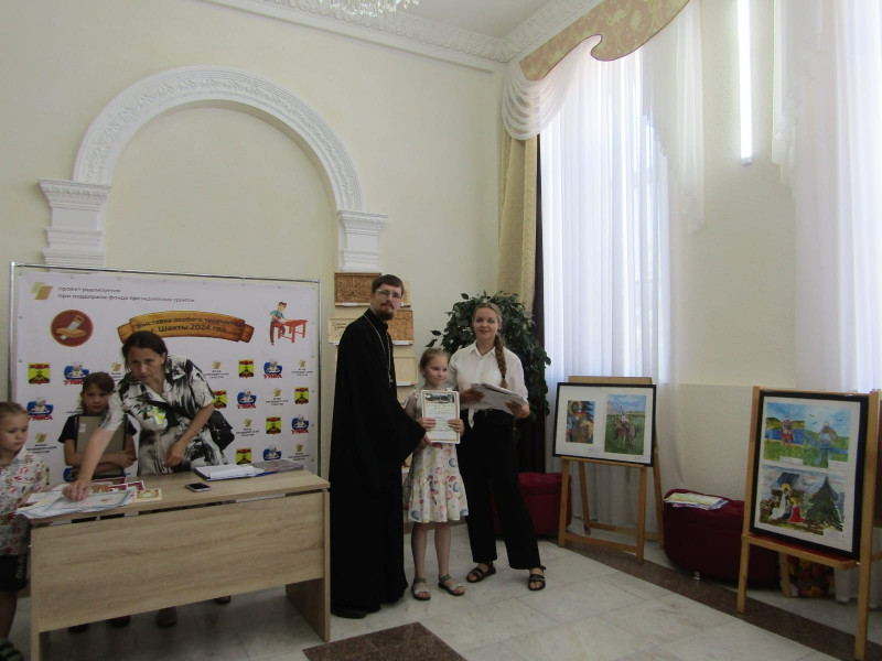 В день памяти святого благоверного великого князя Димитрия Донского и великой княгини Евдокии, в районном Дворце культуры п. Каменоломни, в рамках, запланированных отделом культуры мероприятий, посвященных Дню защиты детей, сотрудниками Нижнедонского благочиния была организована выставка детских работ и состоялось торжественное награждение юных художников за участие в фестивале-конкурсе «По следам мужества и стойкости».