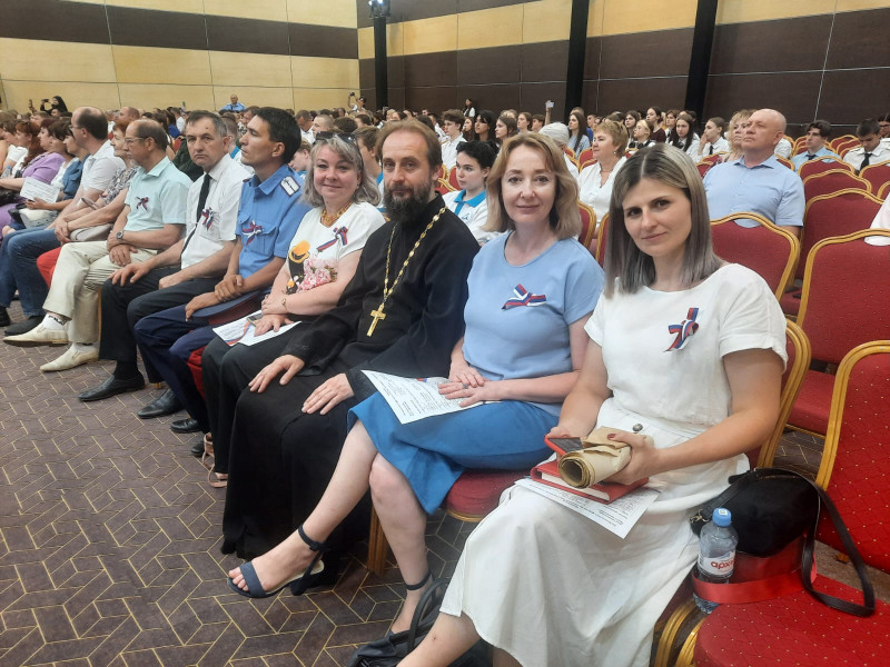В составе делегации от Октябрьского района, по благословению епископа Шахтинского и Миллеровского Симона, в мероприятии принял участие председатель епархиального отдела религиозного образования и катехизации, благочинный приходов Нижнедонского округа протоиерей Сергий Яценко.