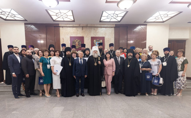 Приветствие участникам заседания от представителя Президента Российской Федерации в ЮФО Владимира Устинова передал его заместитель Анатолий Сафронов. С приветственными словами также обратились министр общего и профессионального образования Ростовской области Тамара Шевченко, заведующий сектором мероприятий и конкурсов Синодального отдела религиозного образования и катехизации Русской Православной Церкви иеромонах Трифон (Умалатов) и председатель Экспертной комиссии Конкурса Ирина Стеценко, которая подвела итоги конкурса.