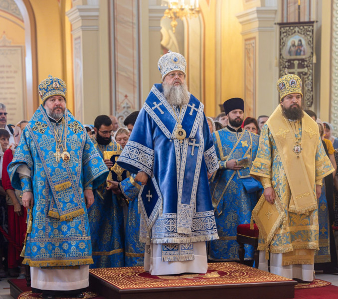 Его Высокопреосвященству сослужили епископ Шахтинский и Миллеровский Симон, викарий Ростовской епархии епископ Таганрогский Артемий, а также клирики Донской митрополии.