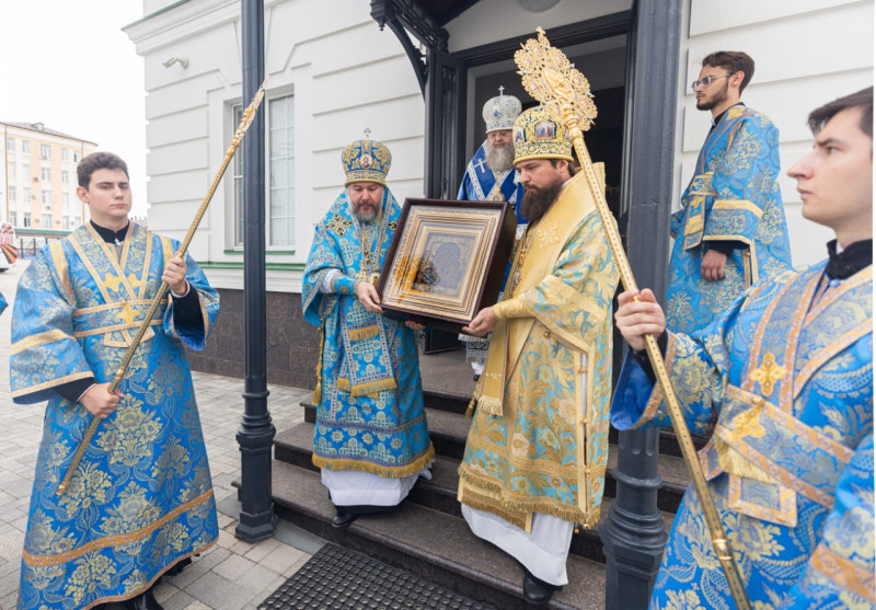 «Сегодня, по благословению Святейшего Патриарха Московского и всея Руси Кирилла, в рамках общероссийского крестного хода принесена чудотворная Казанская икона Божией Матери. Это копия иконы, явленной в Казани, которая сопровождала ополчение Минина и Пожарского и вдохновляла русское воинство на освобождение Москвы от иноземных захватчиков...