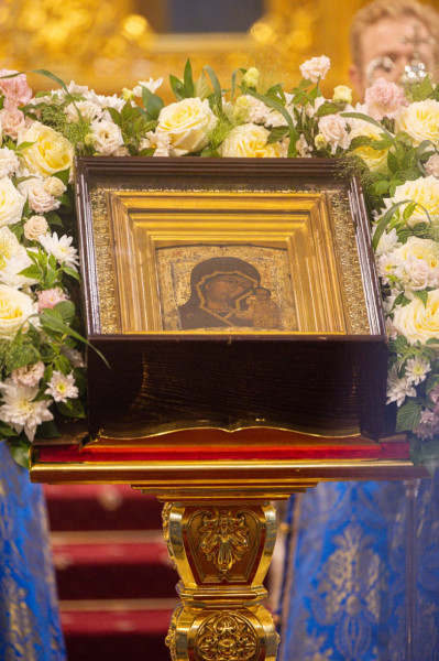 По окончании богослужения всем молящимся были розданы памятные иконы Божией Матери «Казанская» с благословением Святейшего Патриарха Московского и всея Руси Кирилла.