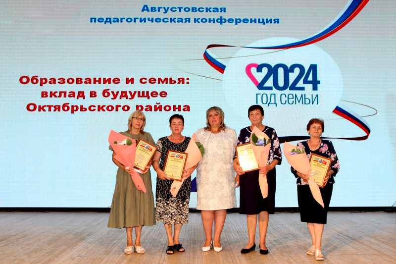 С началом учебного года заслуженных учителей России, представителей учительских династий, почетных работников общего образования, руководителей образовательных учреждений, творчески работающих педагогов и воспитателей поздравила глава Администрации Октябрьского района Людмила Овчиева, и вручила им ряд заслуженных наград.