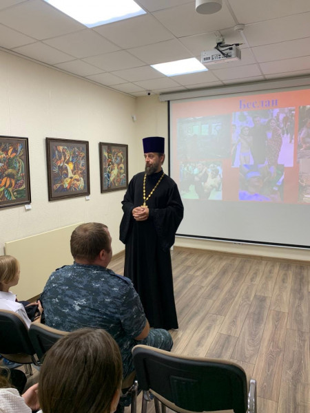 В своем пастырском слове священник напомнил присутствующим о ценности жизни человека, которую нам дал Господь, о том, что терроризм — это проявление отсутствия любви и неуважения к личности и свободе людей. Он отметил, что слово «Мир», которое прозвучало сегодня на мероприятии, каждый из нас может воплотить в жизнь, оказывая помощь всем, кто оказался в тяжелой жизненной ситуации, всем слабым, больным и нуждающимся. Этому, в том числе, учат учителя в школе и священники в храме.
