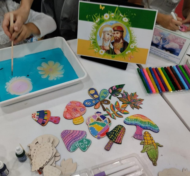 Для детей, принявших участие в мероприятии, с целью воспитания интереса к творчеству, аккуратности и старательности, член семейного клуба Элеонора Ивановская провела мастер - класс по росписи декоративных деревянных изделий.