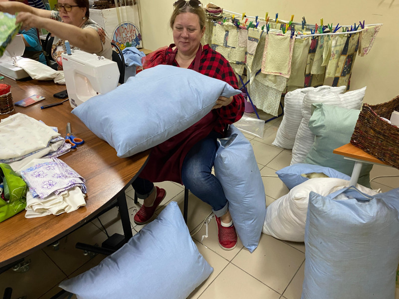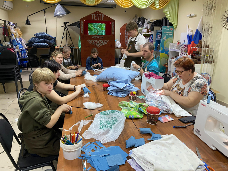 Дети - инвалиды при поддержке взрослых, сделали своими руками подушки и постельное белье для военнослужащих, находящихся на лечении в госпитале и передали сестрам Марфо - Мариинского Сестричества храма Архистратига Михаила п. Каменоломни.