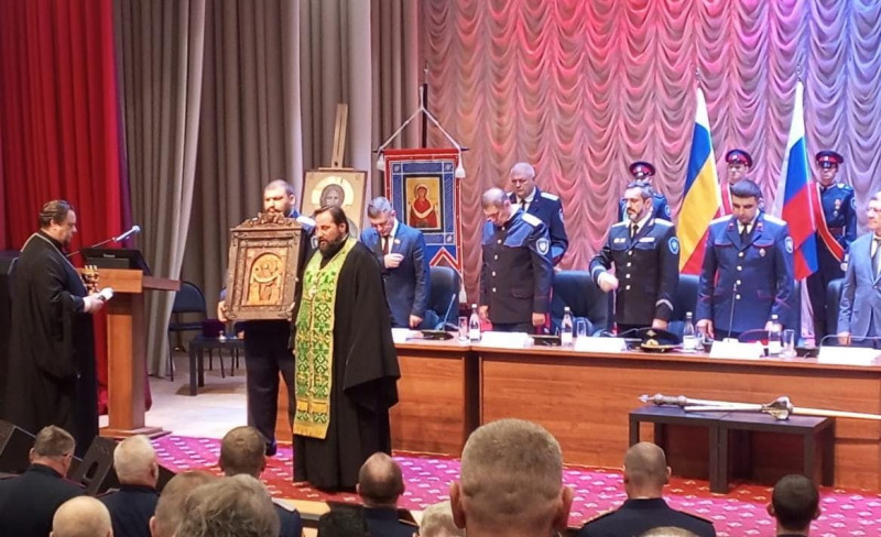 В завершение мероприятия состоялось освящение войсковой иконы Покрова Пресвятой Богородицы, которая будет передана в 17-й Донской казачьего генерала Бакланова полк бригады «Дон» ДШК.