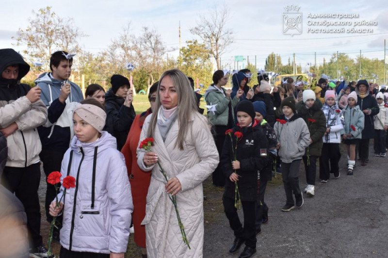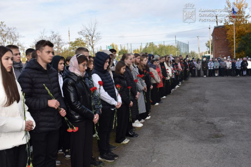 Во время митинга память Александра Сапунова почтили глава Администрации Октябрьского района Людмила Овчиева, заместитель главы Администрации района Лариса Бутова, благочинный приходов Нижнедонского округа протоиерей Сергий Яценко, начальник отдела образования Администрации района Анна Тараско, глава Администрации Мокрологского сельского поселения Григорий Кочин, Почётный гражданин Октябрьского района, депутат Собрания депутатов Октябрьского района Евдокия Каргина, председатель районного совета ветеранов Юрий Точеный, директор школы № 6 Ирина Кацилова, родители и родственники Александра Сапунова, жители хутора Маркин, учащиеся школы № 6.