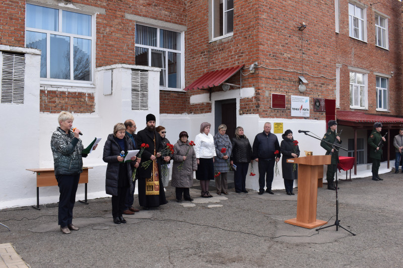 Благочинный приходов Нижнедонского округа протоиерей Сергий Яценко совершил освящение мемориальной доски и обратился к родителям погибшего война и к участникам мероприятия с пастырским словом.