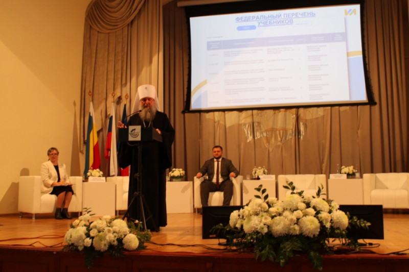 Под председательством викария Ростовской епархии епископа Таганрогского Артемия в РГУПС прошло заседание областного методического совета. Сопредседателями выступили председатель Синодального отдела религиозного образования и катехизации Русской Православной Церкви митрополит Екатеринбургский и Верхотурский Евгений, первый заместитель министра Ростовской области Сергей Анищенков, модератором секции – заведующий кафедрой дошкольного и начального образования ГАУ ДПО РО Институт развития образования Татьяна Пожидаева.