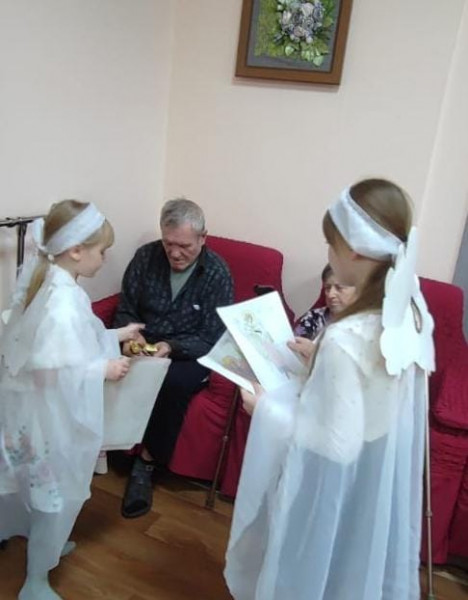 Учащиеся церковно-приходской воскресной школы «Благовест» при храме Архангела Михаила посёлка Каменоломни Октябрьского района посетили местный пансионат для пожилых людей.