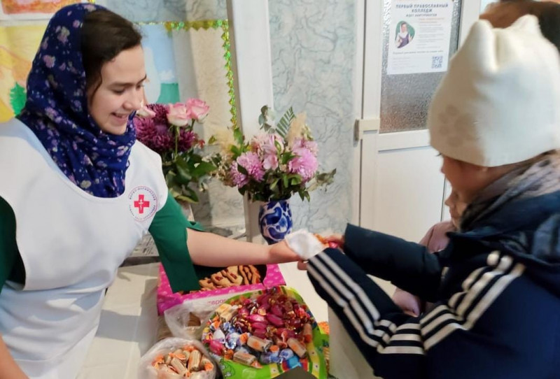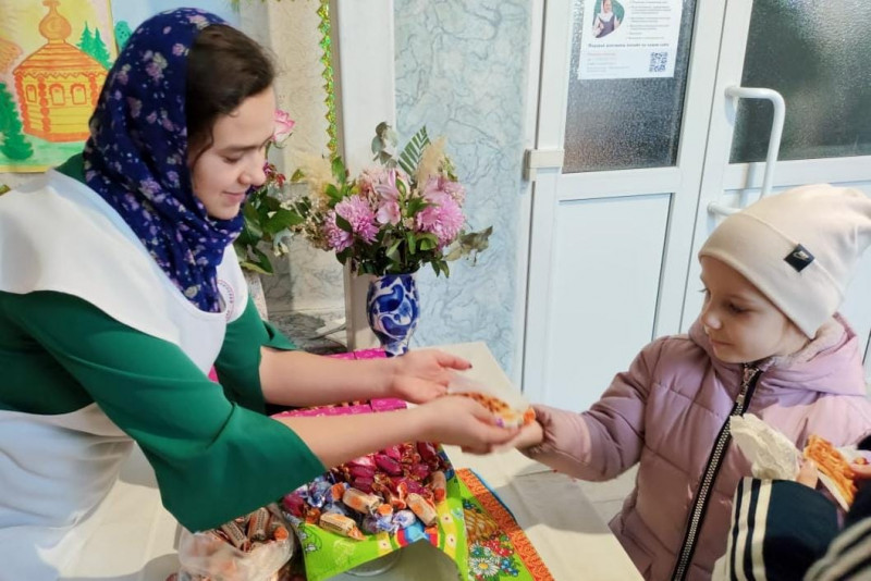 Сестры Марфо - Мариинского Сестричества организовали раздачу сладостей для детей в взрослых.