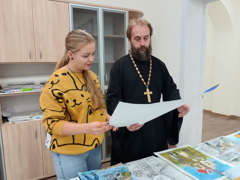 Руководитель мастерской Кристина Шульга, член Молодёжного парламента при Собрании депутатов Октябрьского района, рассказала священнику, что деятельность "Творческой мастерской - это такая форма образовательной деятельности, которая создает условия для вхождения каждого участника к новому знанию и новому опыту путем самостоятельного или коллективного открытия".