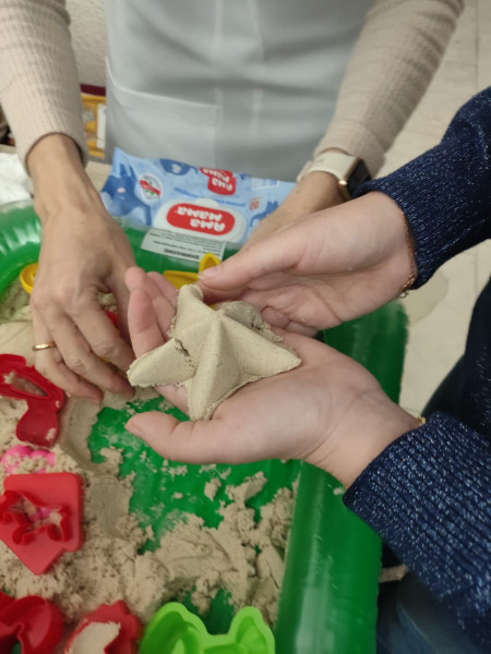 - развивающая игра с «кинетическим» песком, надувной песочницей и формочками;