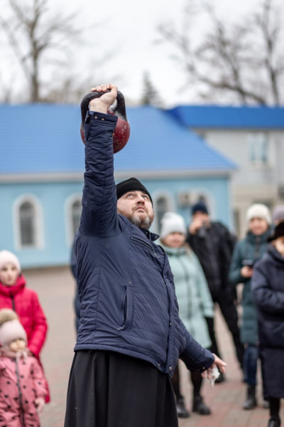 Активные участники праздника, на деле показали, что не перевелись на Руси богатыри, самые тяжелые гири до 70-ти килограмм смогли одолеть священнослужители Шахтинской епархии. Попробовали свою силу и все желающие, для которых было устроено соревнование в трех весовых категориях, начиная с самого младшего возраста.