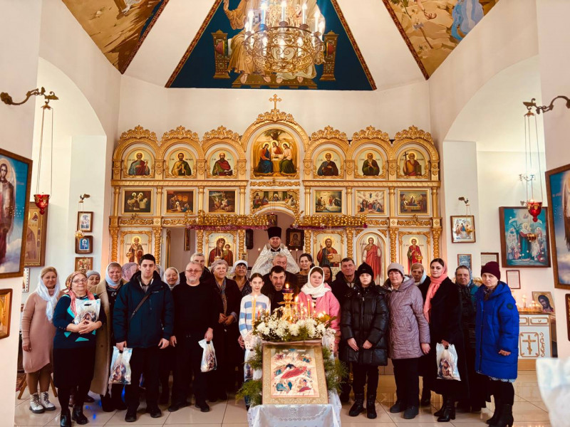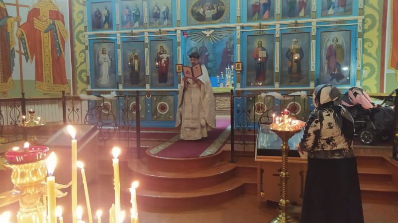 В завершении службы священнослужители совершили славление праздника, после чего обратились к молящимся с поздравительным словом.