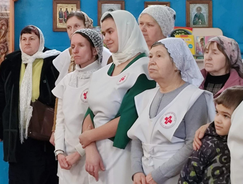 В храме Архистратига Михаила п. Каменоломни данное служение доброделания ближнему, выполняют сестры милосердия.