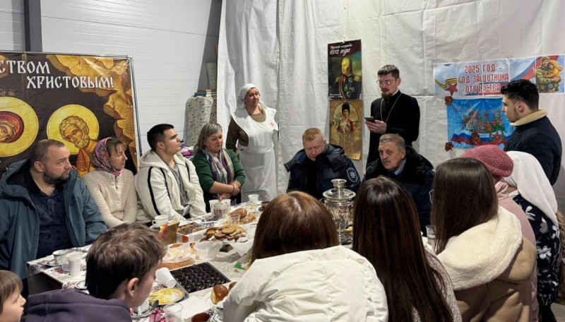 По благословению благочинного приходов Нижнедонского округа протоиерея Сергия Яценко, в храме Архангела Михаила п.Каменоломни на базе гуманитарного центра в день великого праздника Богоявлегия Господня, состоялась совместная встреча сестёр Марфо-Мариинского сестричества, молодежного актива семейного клуба «Верность», специалистов местного отделения Движения Первых Октябрьского района, родителями муниципального семейного сообщества «Родные-Любимые» и представителями казачества.