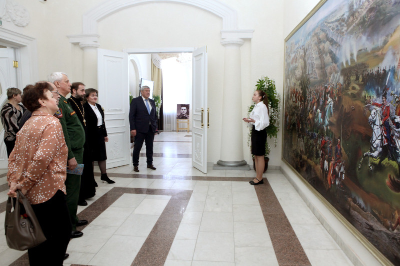 Художественное полотно выставлено в районном Дворце культуры. Одними из первых выставку посетили председатель Собрания депутатов-глава района Евгений Луганцев, глава администрации муниципалитета Людмила Овчиева, благочинный приходов Нижнедонского округа протоиерей Сергий Яценко.