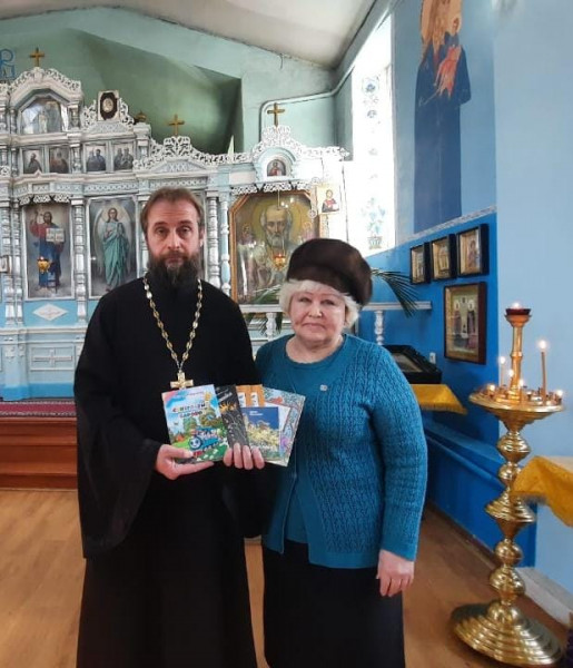 При встрече Людмила Васильевна передала священнику для благотворительной раздачи авторские книги для детей.