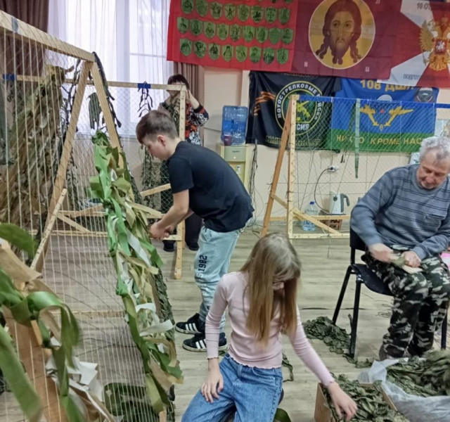 Воспитанники воскресной школы "Благовест" храма Архистратига Михаила п. Каменоломни, совместно с волонтёрами Октябрьского района регулярно принимают активное участие в плетении маскировочных сетей, находя свободное время как в учебный период, так и в период каникул.