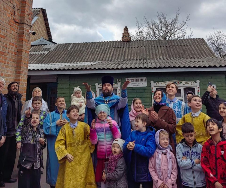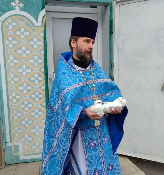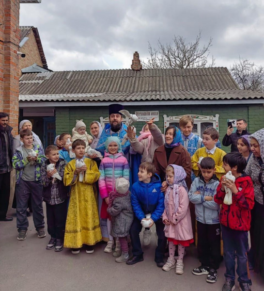 В великий праздник Благовещения Пресвятой Богородицы, по древней традиции, после Божественной Литургии в храме Архистратига Михаила п. Каменоломни Октябрьского района, благочинный приходов Нижнедонского округа протоиерей Сергий Яценко, прихожане и дети церковно-приходской воскресной школы "Благовест" выпустили в небо белых голубей.