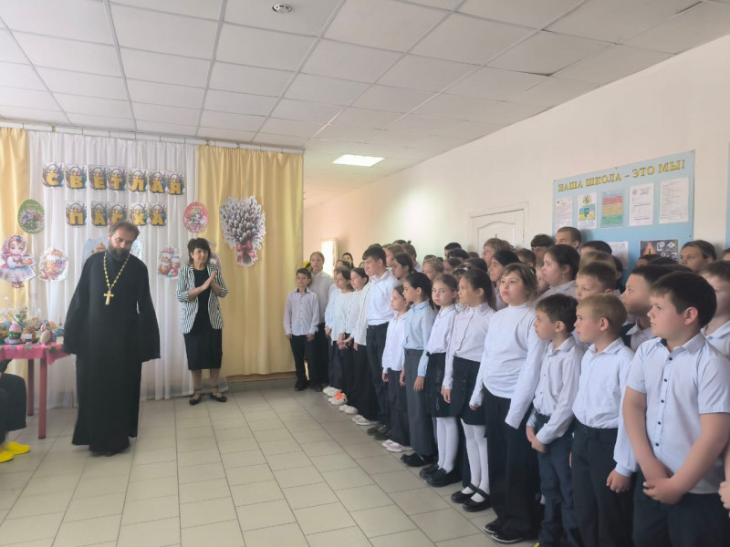 В школе № 23 п. Красногорняцкий Октябрьского района для обучающихся 1-6 -ых классов был проведен час православия «Пасха-светлый праздник». Со словами поздравления ко всем присутствующим обратился благочинный приходов Нижнедонского округа протоиерей Сергий Яценко.