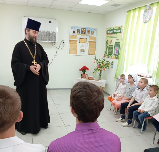 По сложившейся доброй традиции, воспитанников детского приюта «Огонёк» п. Каменоломни, первым, в день Светлого Христова Воскресения поздравляет благочинный приходов Нижнедонского округа протоирей Сергий Яценко. Совместно с ним, поздравить детей приходят учащиеся церковно-приходской воскресной школы «Благовест» храма Архангела Михаила п. Каменоломни.