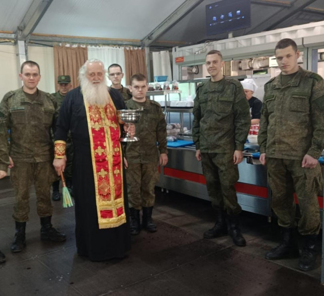 Священник зачитал Пасхальное Послание Святейшего Патриарха Московского и всея Руси Кирилла, Правящего Архиерея, епископа Шахтинского и Миллеровского Симона, обратился к военнослужашим с пастырским словом и пообщался с личным составам подразделения.