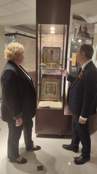 Старшие преподаватели кафедры «Православная культура и теология» Илья Геннадиевич Шарков и Людмила Борисовна Томилина 15 мая посетили краеведческий музей Октябрьского района в п. Каменоломни. Кафедру православной культуры с районным музеем связывает сотрудничество с первых дней открытия обновлённого в 2022 году учреждения культуры. Древлехранитель Шахтинской епархии И. Г. Шарков неоднократно консультировал музейных сотрудников по вопросам атрибуции ряда экспонируемых предметов, относящихся к православной традиции. Также, 2 февраля 2023 года Шахтинская епархия при участии сотрудников районного музея подготовила к экспонированию собрание предметов церковной старины казачьего Дона. Экспозицию «Верой жив казачий Дон: церковная старина как свидетельница народного благочестия», концептуально объединившую свидетельства благочестия казаков Верхнего и Нижнего Дона, тогда представил гостям музея епархиальный древлехранитель.