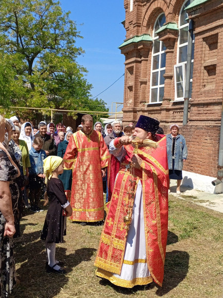 По окончании службы состоялся традиционный Крестный ход. Настоятель прихода обратился к молящимся с пастырским словом и поздравил станичников и гостей с престольным праздником.