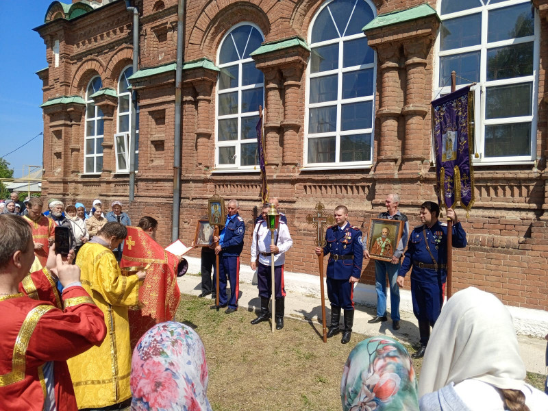 По окончании службы состоялся традиционный Крестный ход. Настоятель прихода обратился к молящимся с пастырским словом и поздравил станичников и гостей с престольным праздником.