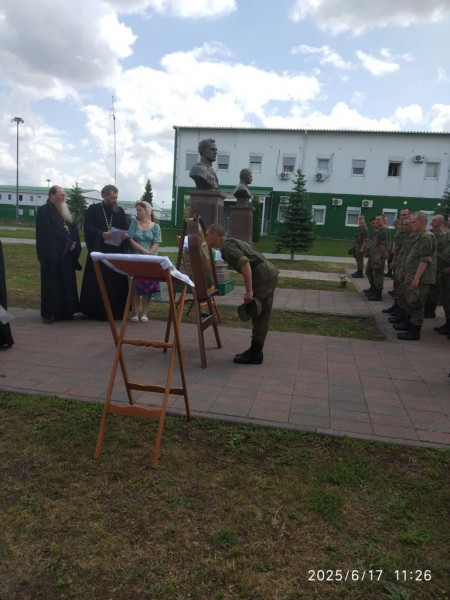 Возносились молитвы о мире, здравии военнослужащих и членов их семей, а также благодарение и славление всех Небесных Сил. По окончании молитвы протоиерей Николай Неустроев расказал о легендарном комбате Победы Степане Андреевиче Неустроеве, своём земляке и о его подвиге, а также о истории создания и написания иконы Архистратига Михаила Воеводы.