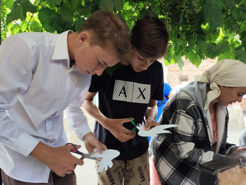 Участники акции сложили методом оригами голубей, а также вырезали бумажных голубей, познакомили детей и подростков с памятной датой начала Великой Отечественной войны 1941-1945 годов и рассказали о помощи Божией в период войны.