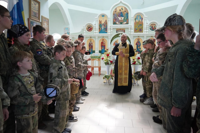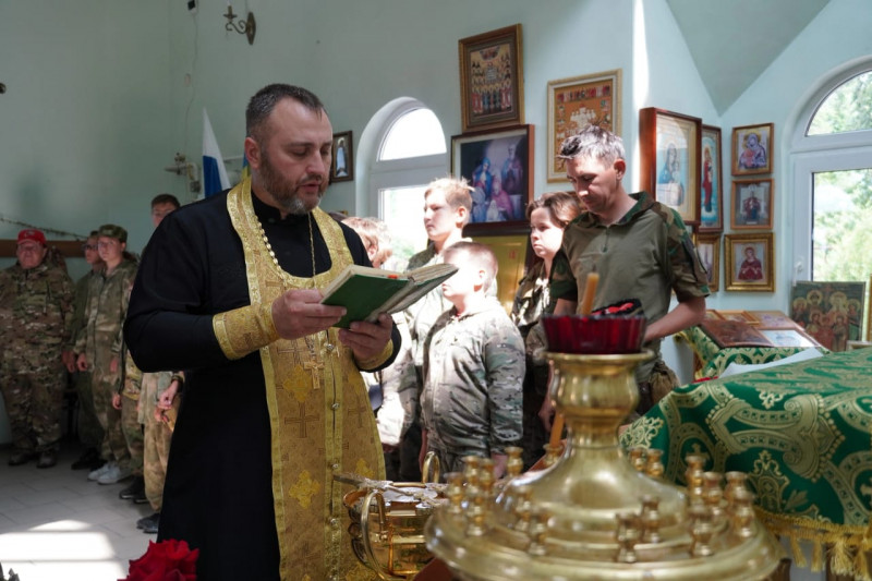 Для участников учебно-полевых сборов, в храме святого Георгия Победоносца п. Новозарянский прошёл молебен. Настоятель прихода иерей Сергий Липень благословил ребят на доброе дело и обратился к участникам мероприятия с пастырским наставлением.