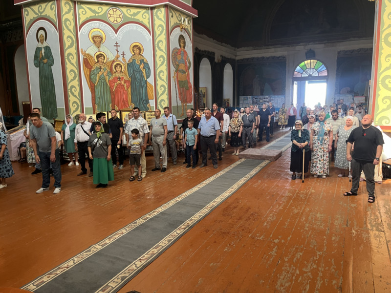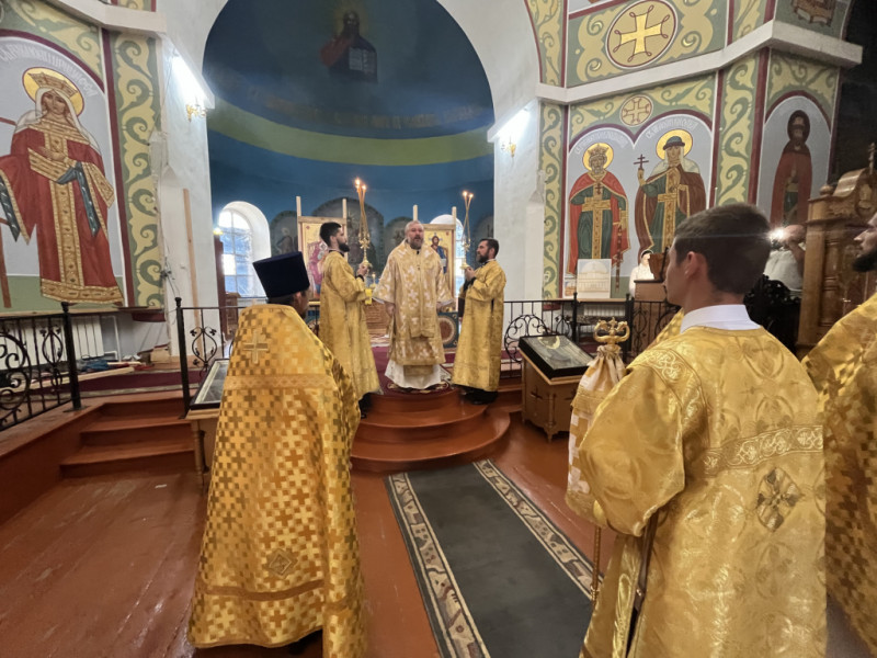 Архиерей совершил причащение и преподал молящимся архипастырское благословение.